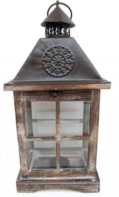 Strona głównaLATARNIE I LAMPIONYLAMPION DREWNIANY BRĄZ / METALOWY DACH 44CM