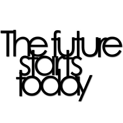 Dekoracyjny napis na ścianę "THE FUTURE STARTS TODAY"- tłumaczenie "Przyszłosć zaczyna się dzisiaj".